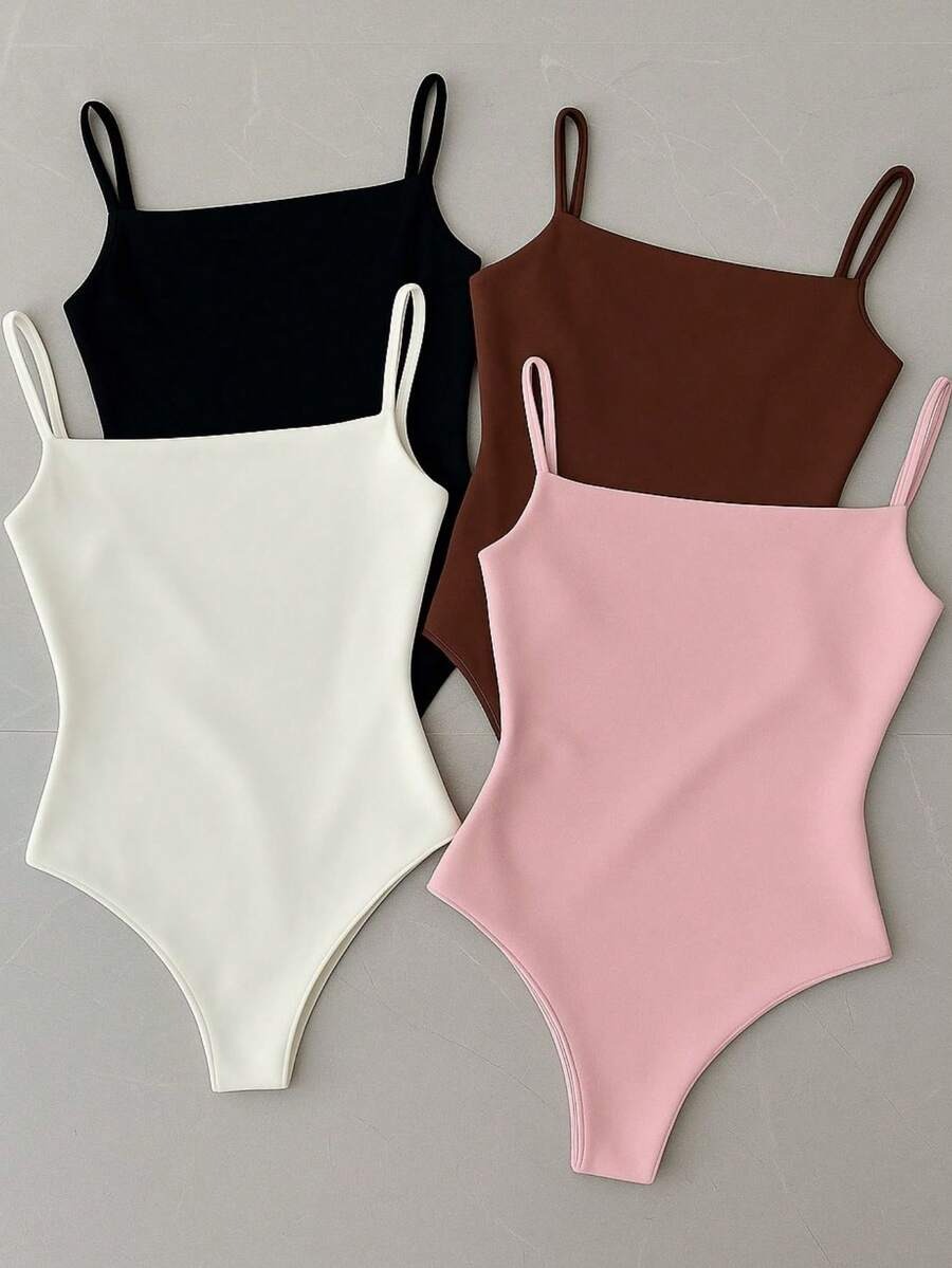 Body Collant Feminino De Alça Alcinha Com Decote Reto Modelador